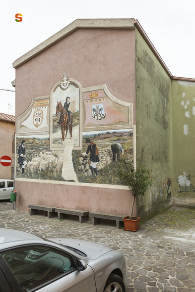 paesaggio campestre, figure umane e animali, gonfalone della Regione Autonoma della Sardegna, gonfalone del Comune di Macomer