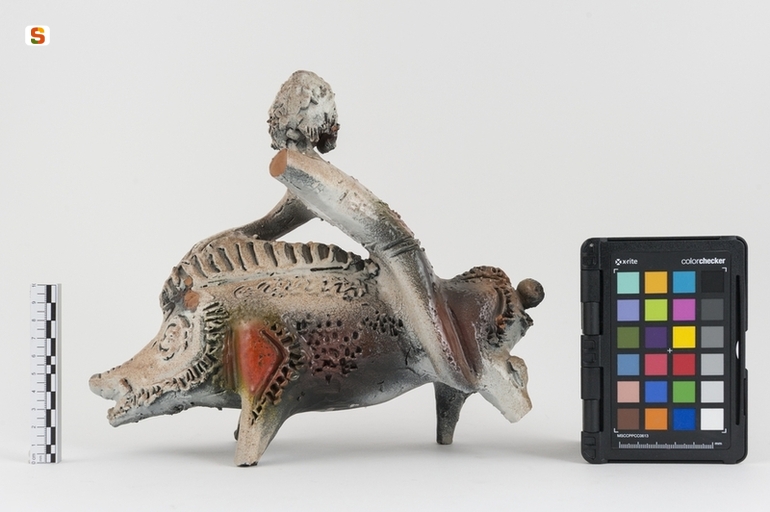 figura maschile che cavalca un cinghiale