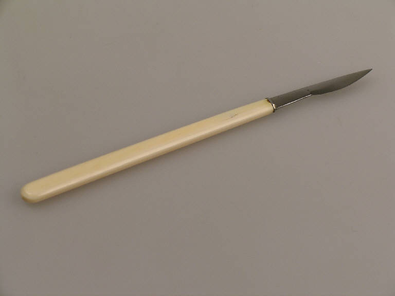 Su una lunga impugnatura di avorio è fissata una lama che costituisce dapprima un prolungamento dell'impugnatura e poi si allarga verso l'estremità in un tratto convesso e tagliente