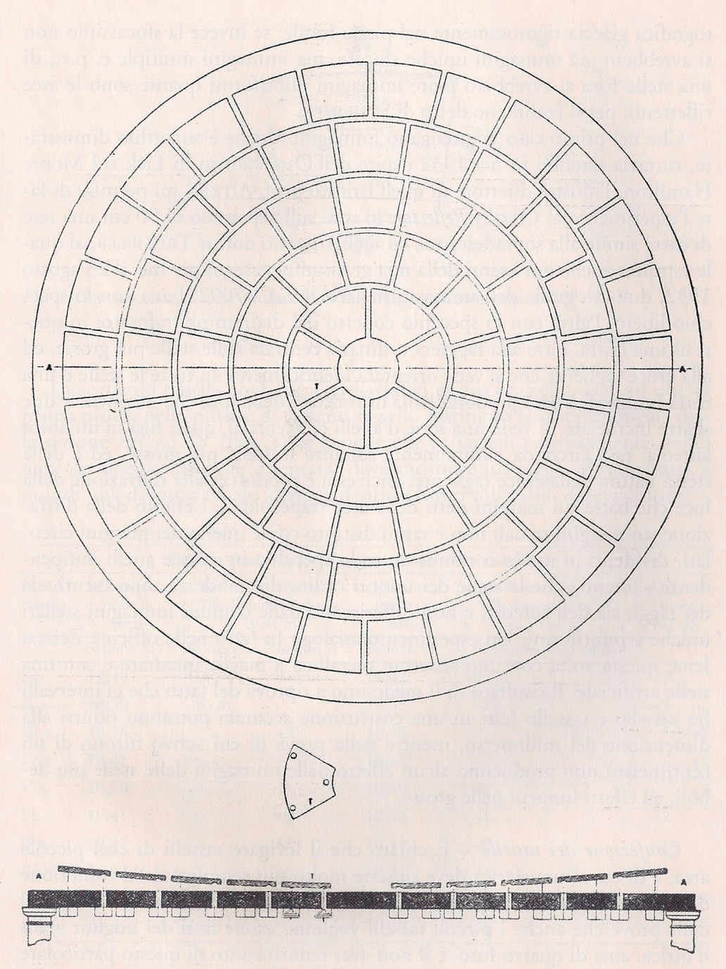 Prototipo dello specchio a tasselli di Guido Horn d'Arturo, composto in origine da 80 tasselli trapezoidali di curvatura sferica, disposti in cinque anelli concentrici. Ciascuno specchio ha una superficie di circa 1 dm2