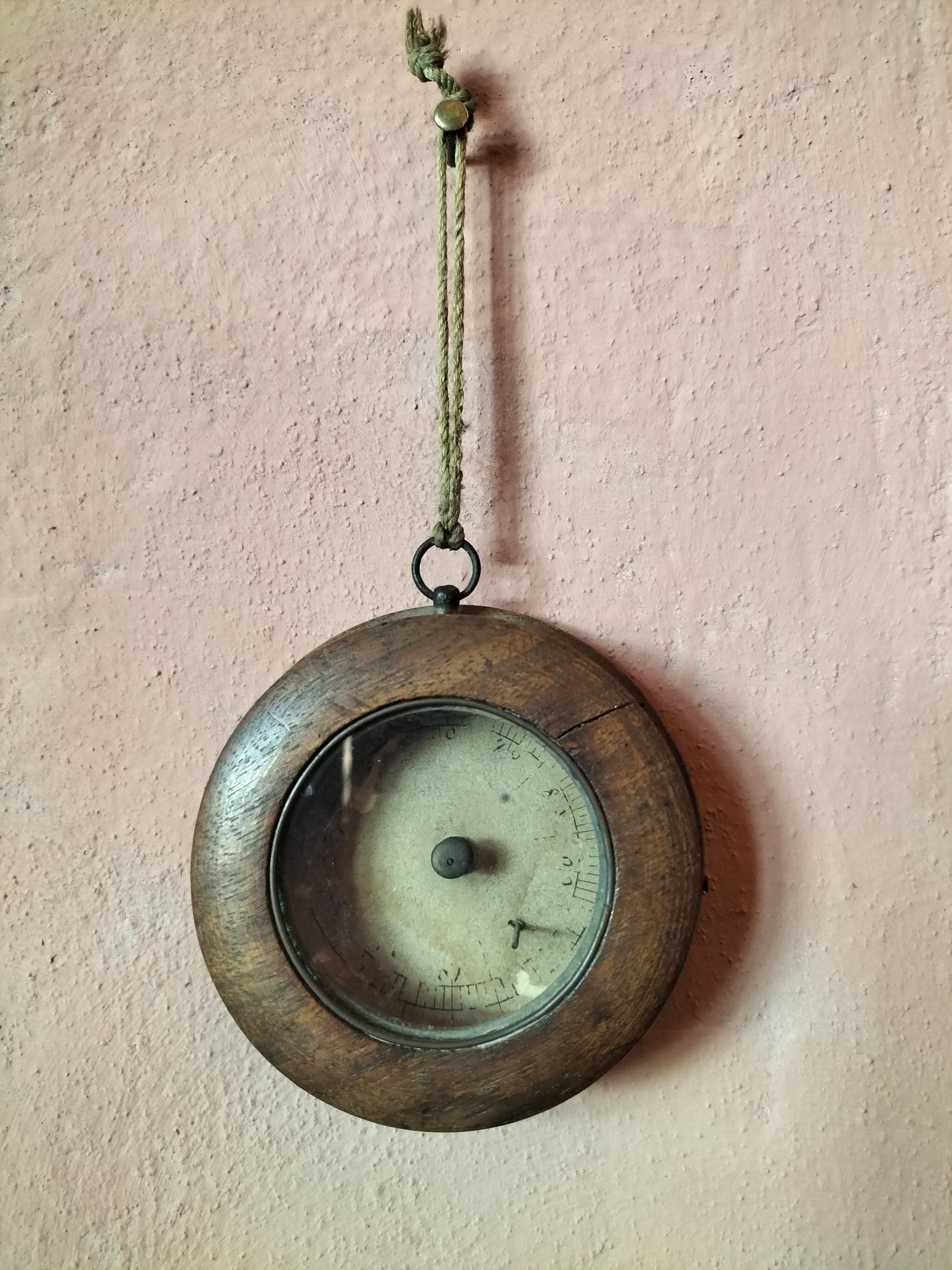 Igrometro a capello risalente alla metà dell'Ottocento, composto da una scatola tonda in bosso. Doveva contenere l'elemento sensibile alle variazioni di umidità, tipicamente un ciuffo di capelli
