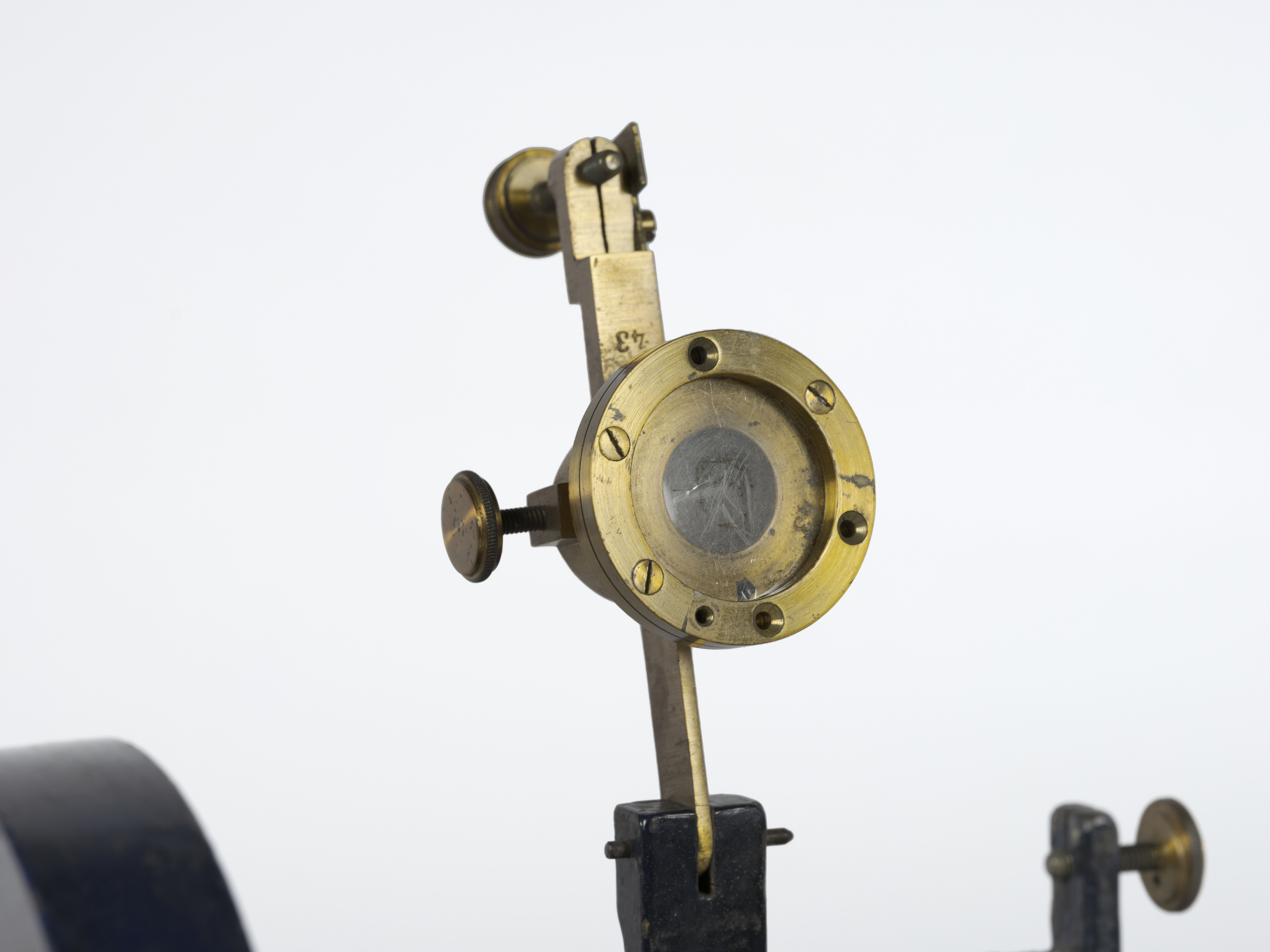 Contenitore: base rettangolare in legno dipinto di nero a cui è fissato il supporto in ghisa e decorata con due tipologie di motivi floreali stilizzati in oro e sul piano sono dipinte due immagini con composizioni di fiori naturalistici colorati. Sulla base rettangolare è fissata la macchina in metallo e su una struttura montata al centro della base è fissato il diaframma in ottone su cui è montata la tromba. Motore: propulsione manuale a manovella con “ruota” stabilizzatrice; Sistema di riproduzione del suono: diaframma in ottone con sistema di regolazione della pressione; tromba in metallo smaltato nero all’esterno, con decorazioni in oro, e interno azzurro. Modalità d’uso: tin-foil a movimento manuale (non utilizza sistemi di propulsione meccanici). Il supporto del diaframma è incernierato e può essere sollevato per permettere l’applicazione del supporto registrabile necessario per l’incisione del suono. Una volta applicato il supporto sul mandrino, riposizionare il diaframma all’inizio e regolare la pressione dello stilo mediante la manopola posta sulla sinistra contrassegnata dalla lettera “B” (forse per “bascule”). Azionare la rotazione agendo sulla manovella collocata sulla ruota di stabilizzazione e parlare a voce alta nella tromba in dotazione. Al termine dell’incisione sollevare il diaframma, riportare lo stesso all’inizio del mandrino e riposizionarlo avendo cura di diminuire la pressione dello stilo agendo sulla manopola “B” per non danneggiare eccessivamente il supporto durante la riproduzione; azionare nuovamente la rotazione cercando di applicare la stessa velocità utilizzata in fase di incisione
