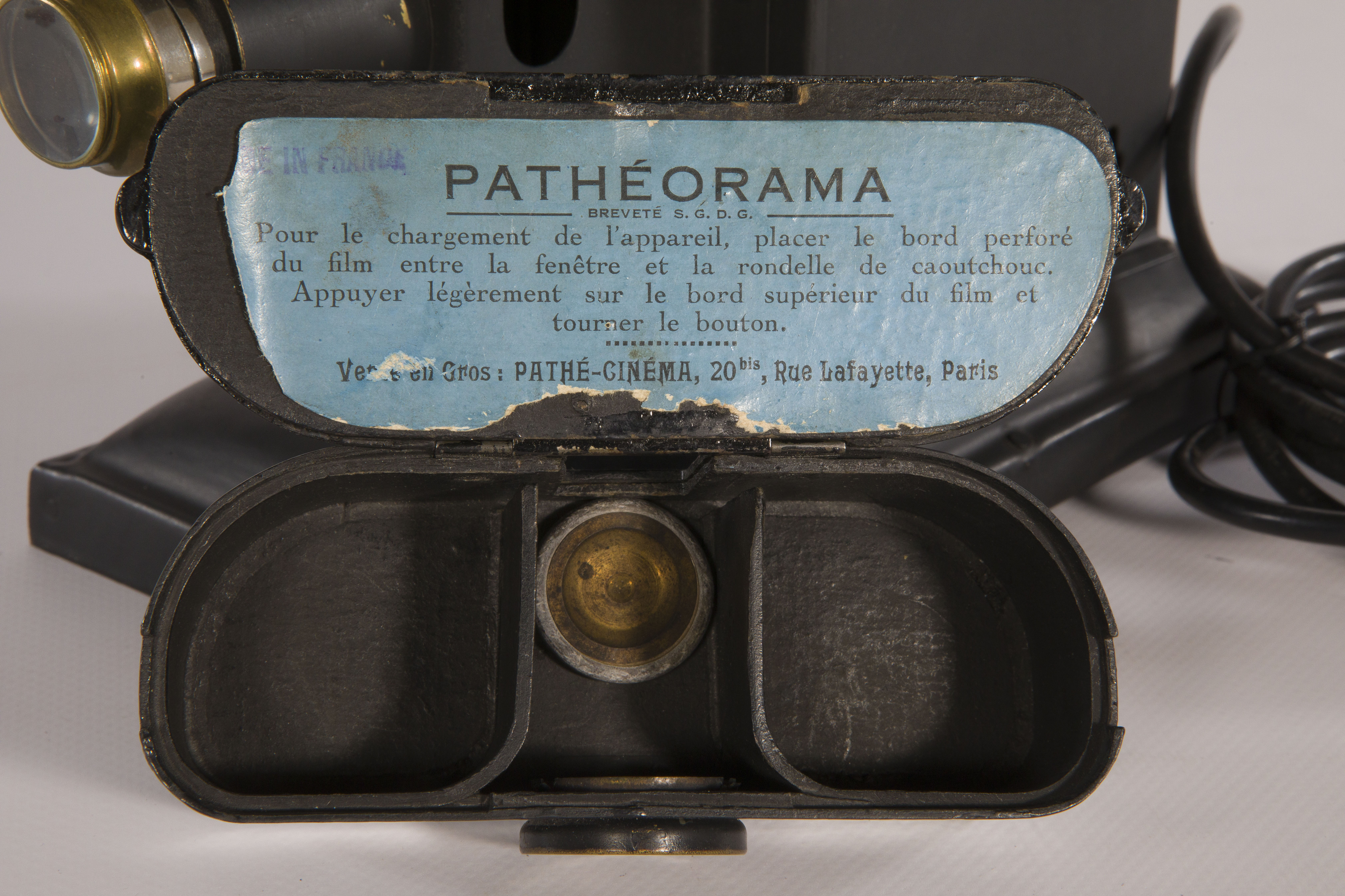 Contenitore: scatola rettangolare in legno con bordi stondati, progettato per essere portatile e resistente. Il coperchio è incernierato per proteggere l'interno e per fornire un facile accesso per cambiare la pellicola; nasconde tre scomparti interni di cui in quello centrale è presente una rotella, per permettere lo scorrimento delle pellicole con le immagini, garantendo un cambio fluido e una visione sequenziale. Sul lato frontale dispone di una lente attraverso la quale si osservavano le immagini proiettate o illuminate. Sul lato superiore è presente un foro per l'entrata della luce esterna, elemento fondamentale per illuminare la pellicola e permettere la visione. Modalità d’uso: aprire il coperchio incernierato, che protegge l'interno del dispositivo e inserire la pellicola Pathéorama nel vano interno, solitamente arrotolata su un piccolo rullo. Le immagini erano stampate su pellicole non infiammabili, create appositamente per questo visore. Il dispositivo non ha una sorgente luminosa interna, quindi per vedere le immagini è necessario utilizzare l'apposito apparecchio Pathè (Pathéorama-Cocorico) oppure una fonte di luce esterna, come una lampada o la luce naturale. La luce entra attraverso un foro situato sulla parte superiore della scatola, illuminando la pellicola dall'interno. Una volta posizionato il visore in modo che riceva sufficiente luce, l'utente guarda attraverso la lente situata sul lato frontale del dispositivo. Questa lente permette di mettere a fuoco l'immagine e vederla in modo chiaro. Per passare da un'immagine all'altra, è necessario girare una rotella posta all'interno del visore. Questo meccanismo permette l’avanzamento della pellicola, mostrando in sequenza le immagini successive. Una volta terminata la visione, la pellicola viene rimossa e conservata per un uso futuro