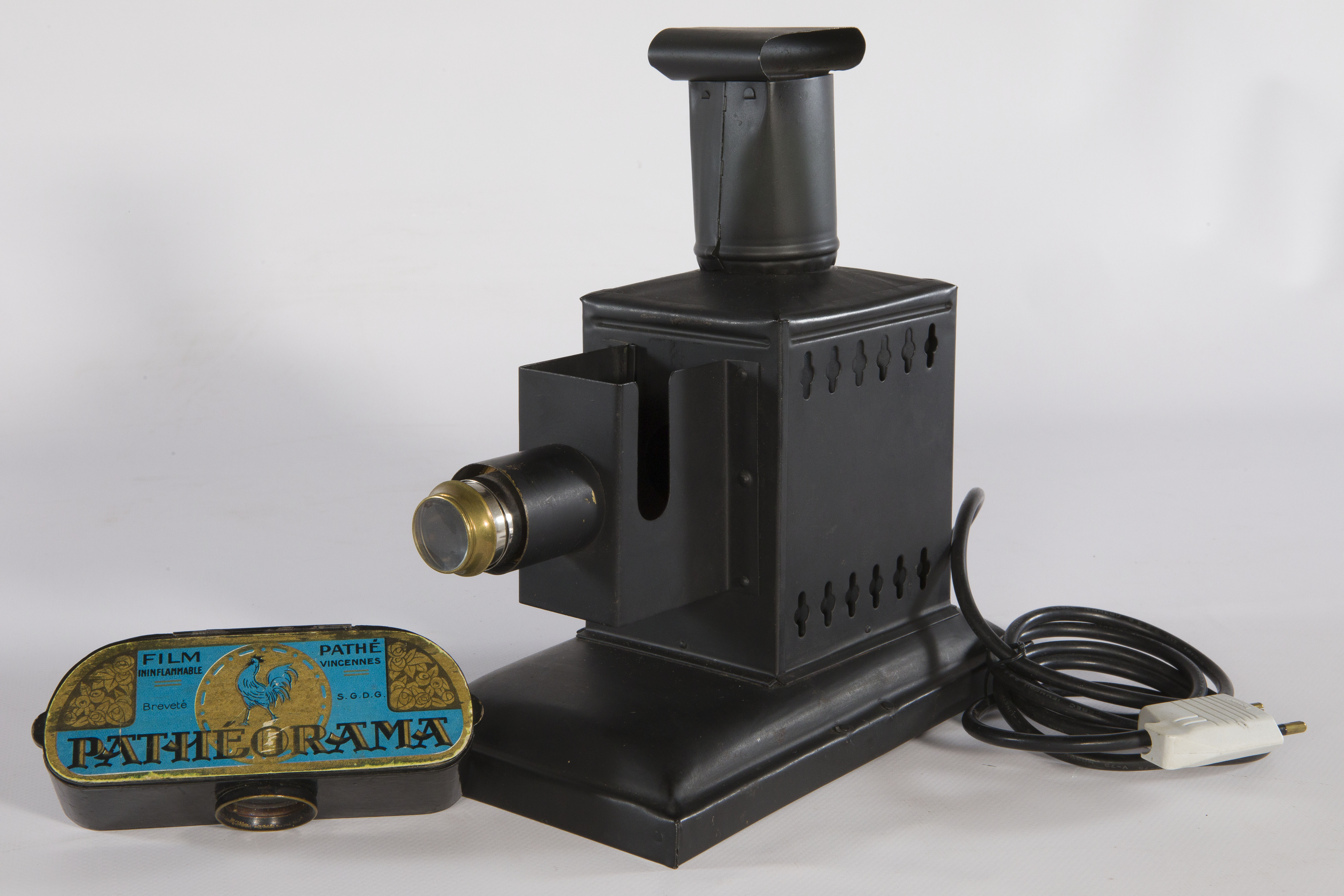 - NOTIZIE STORICO CRITICHE La Pathé Frères è stata fondata nel 1896 da Charles Pathé insieme ai suoi fratelli Émile, Théophile e Jacques. Tuttavia, l'azienda si concentrò presto principalmente sotto la guida di Charles ed Émile. Inizialmente, la società si dedicava alla vendita di macchine per la riproduzione del suono, come fonografi e grammofoni. Già a metà degli anni '90 dell'Ottocento, Charles aveva raggiunto un notevole successo nel commercio di fonografi Edison e grafofoni di Bell, spesso contraffatti. La sua intraprendenza lo portò a vendere anche il cinetoscopio, un'altra invenzione di Thomas Edison, diventando rapidamente il maggiore importatore e rivenditore di questo dispositivo in Francia. Fino ai primi anni del secolo successivo, la Pathé Frères continuò a concentrarsi sul commercio di prodotti legati al suono riprodotto. Tuttavia, già a partire dal 1899, l'azienda decise di investire nel settore cinematografico, avviando la produzione di macchine e accessori per il cinema, tra cui cinetoscopi, proiettori, lanterne magiche e cineprese. Nel 1906, la Pathé inaugurò una fabbrica a Joinville, dedicata alla produzione di film, documentari e vari materiali cinematografici. L'introduzione del Pathéorama avvenne nel 1905. Questo dispositivo rappresentava un'importante innovazione nel campo dell'intrattenimento domestico, permettendo agli utenti di proiettare immagini fisse di alta qualità a casa propria, utilizzando pellicole non infiammabili. Prima dell'arrivo di queste pellicole, i materiali utilizzati per le pellicole cinematografiche, come la nitrocellulosa, erano altamente infiammabili, comportando notevoli rischi di incendio, specialmente in ambienti domestici. L'adozione di filmini non infiammabili ridusse drasticamente tali rischi, rendendo il Pathéorama un dispositivo sicuro e accessibile per l'uso domestico. Di conseguenza, la possibilità di proiettare immagini senza preoccupazioni legate a incendi contribuì ad aumentare notevolmente la popolarità del visore. Il Pathéorama era progettato per visionare singolarmente le immagini ed era un dispositivo portatile. Parallelamente, l'azienda sviluppò anche un proiettore a immagine fissa, commercializzato con il nome di Cocorico, che consentiva la proiezione delle stesse immagini stampate sui filmini Pathéorama, rendendo l'esperienza di visione ancora più accessibile alle famiglie. Tuttavia, con l'avvento del cinema sonoro e la diffusione di proiettori più sofisticati negli anni '30, il Pathéorama e i suoi filmini non infiammabili divennero obsoleti, segnando la fine di un'epoca di intrattenimento visivo domestico caratterizzato da questo innovativo dispositivo