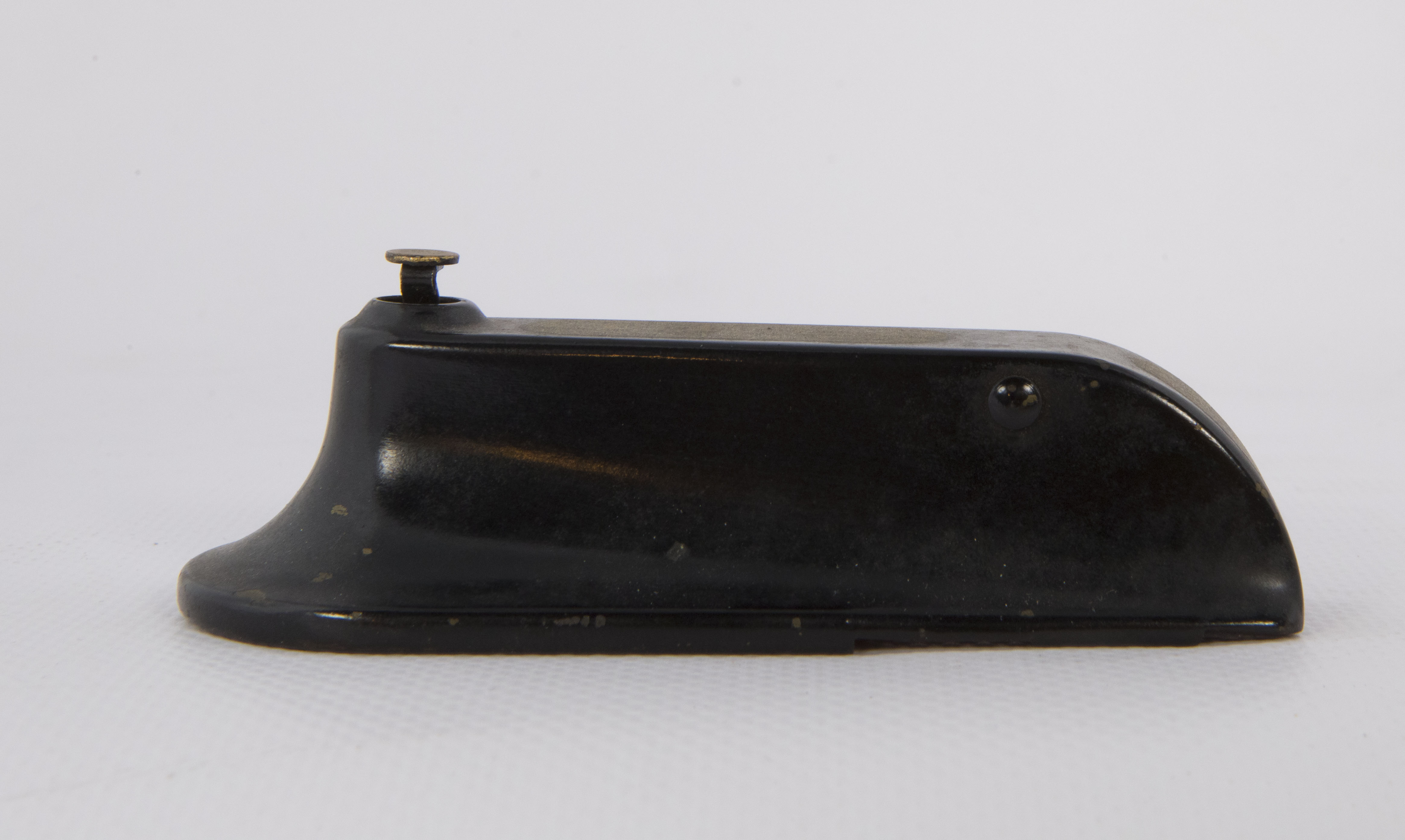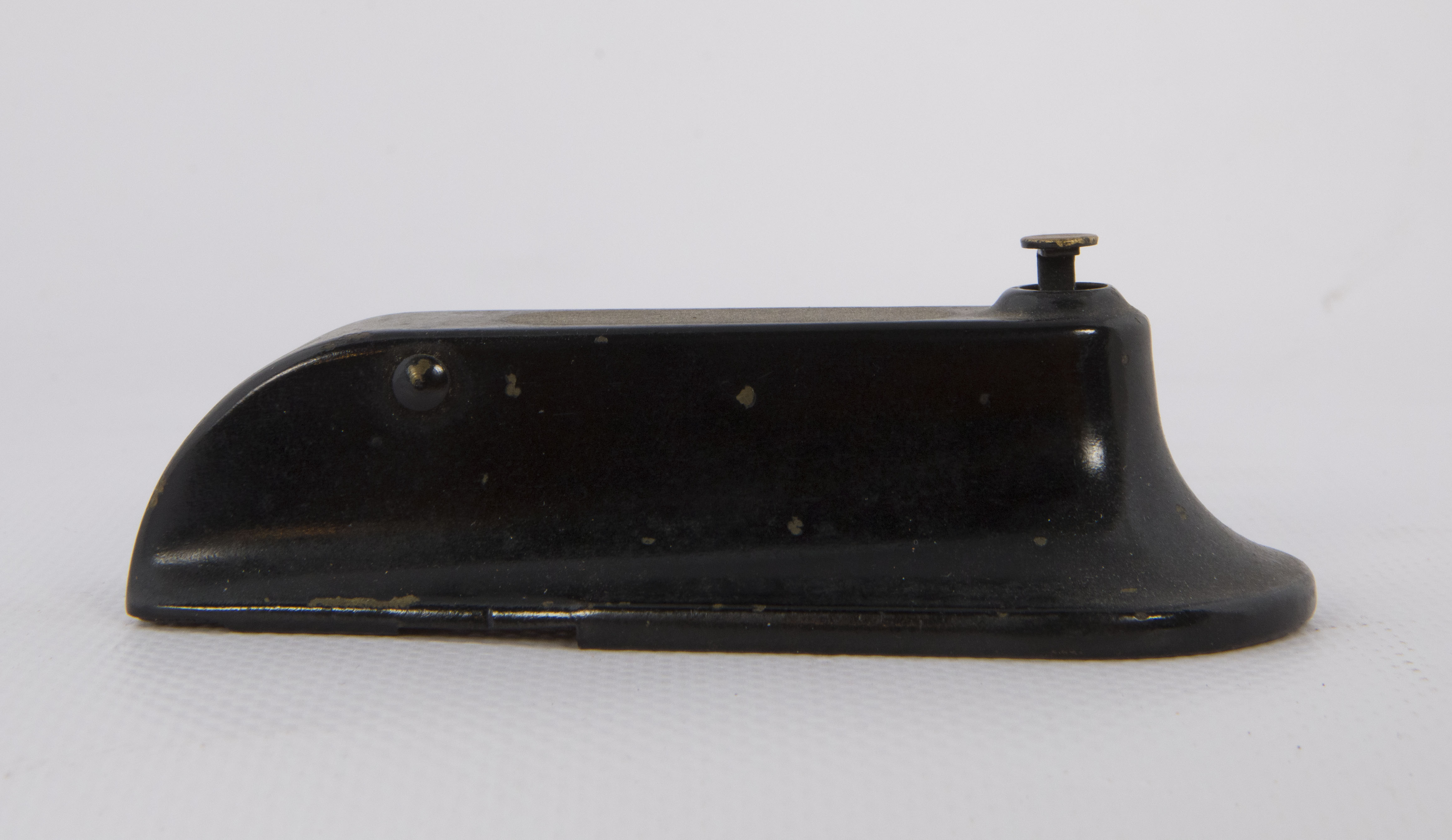 Contenitore: l’apparecchio ha la forma dai bordi arrotondati e dalla forma ergonomica per permettere una facile presa. Nella parte superiore, è presente una levetta che si mantiene stabile quando il disco è alla velocità è corretta. Modalità d’uso: il dispositivo veniva posizionato sul piatto del grammofono e, grazie a un peso bilanciato, permetteva di misurare se il piatto girava alla velocità corretta: il peso si posizionava perfettamente in orizzontale quando il grammofono era ben regolato