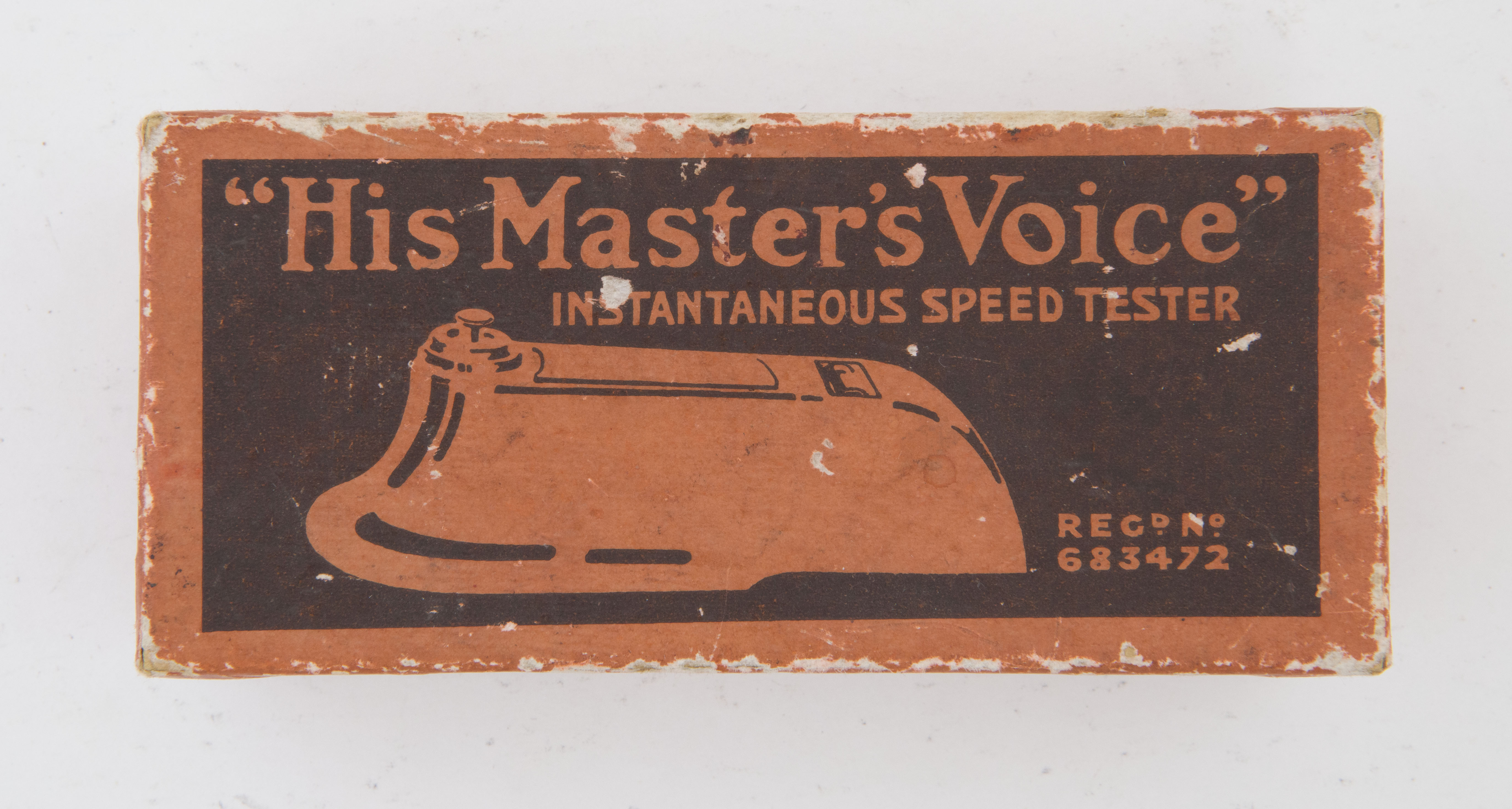 - ISCRIZIONI lato frontale - HIS MASTER’S VOICE / SPEED TESTER / REG° N° / 683472 - maiuscolo - inglese