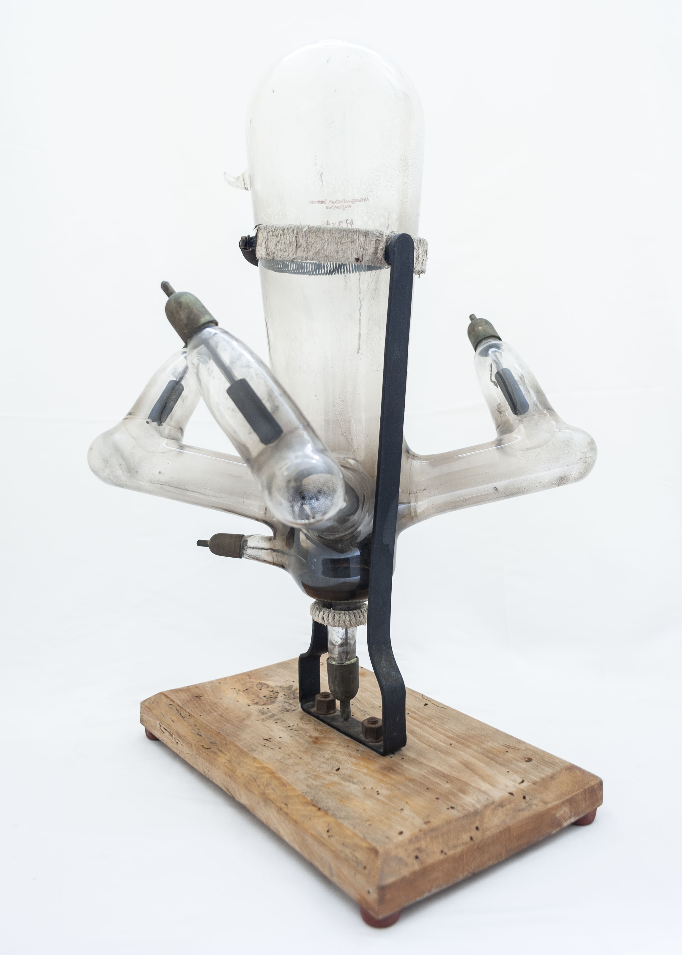 il raddrizzatore a vapori di mercurio è costituito da un’ampolla di vetro sagomata che contiene mercurio liquido a contatto con l'elettrodo che costituisce il catodo. L’ampolla ha tre bracci laterali in cui sono presenti tre elettrodi che costituiscono l'anodo. Alla base del tubo sono presenti due elettrodi di eccitazione e uno di innesco. Tutti gli elettrodi sono in grafite. Lo strumento è fissato su una base di legno per mezzo di un supporto di metallo e di due grosse viti con bulloni. Le zone di contatto tra il supporto metallico e il vetro sono protette da corde avvolte sul metallo