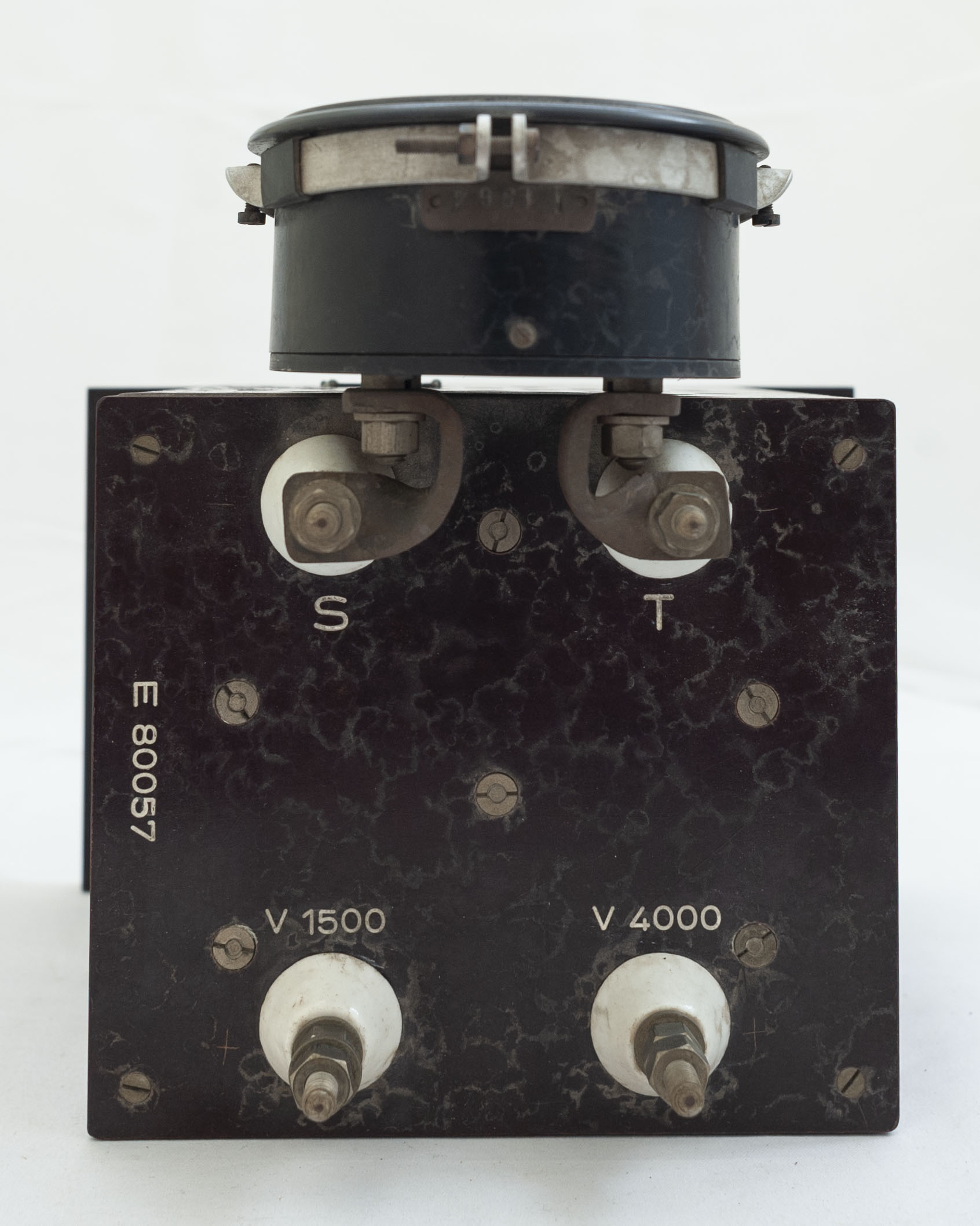 Il voltmetro ha forma cilindrica e il quadrante circolare, che occupa tutta la superficie frontale, è protetto da un vetro. L’ago indicatore, imperniato sulla parte inferiore del quadrante, si muove lungo luna doppia scala, disposta secondo un arco di circonferenza, graduata da 0 a 4000 V con divisioni da 100 e indicazioni numeriche ogni 1000 e graduata da 0 a 1500 V con divisioni da 50 e indicazioni numeriche ogni 300. Il voltmetro è fissato in posizione verticale, tramite due connettori metallici e quattro bulloni situati posteriormente, ad una struttura metallica forata, che contiene una resistenza. La piastra superiore, che chiude con viti la struttura metallica, reca quattro isolatori passanti in porcellana. Due di essi sostengono i serrafili per il collegamento con il circuito esterno a 1500 V e a 4000 V