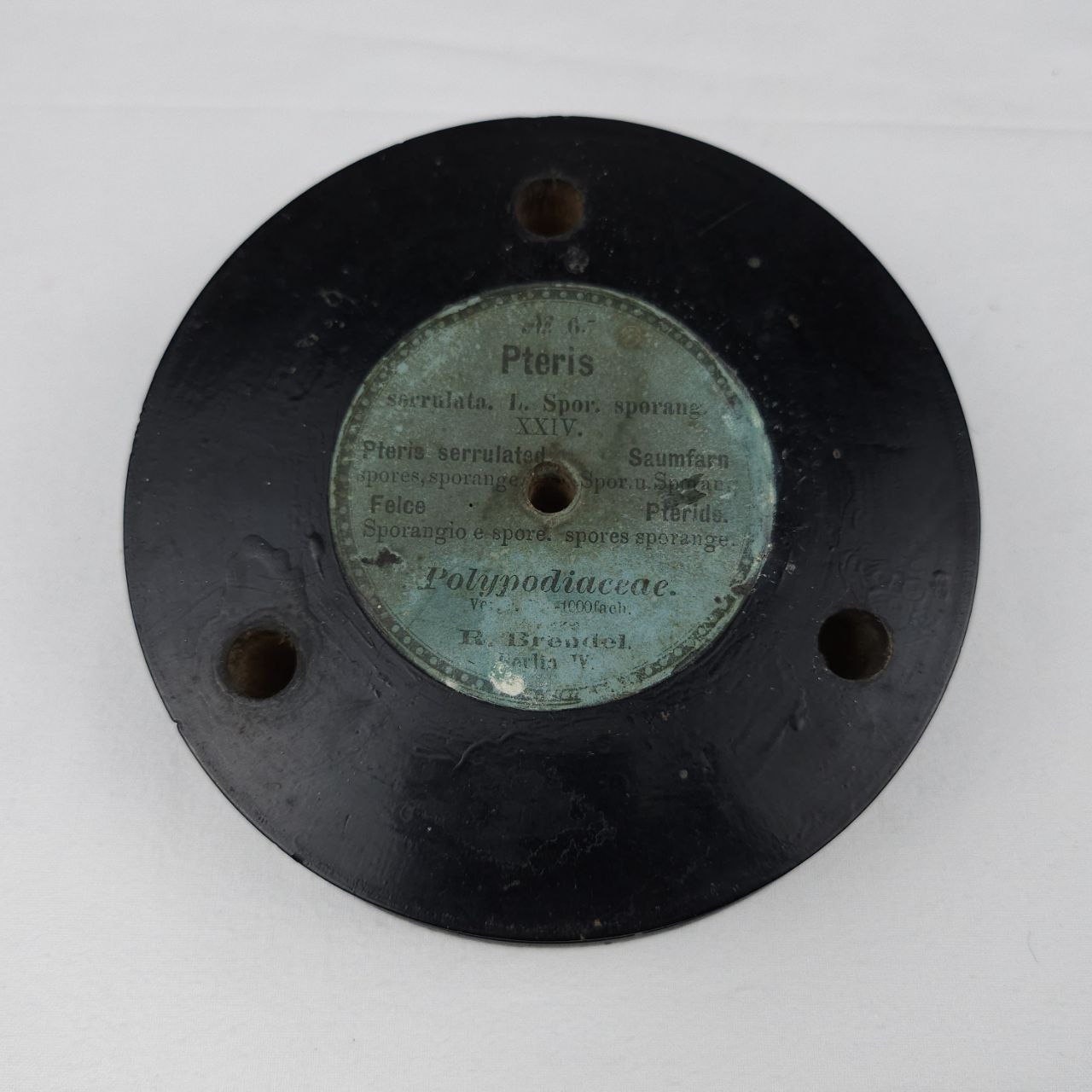 Il modello tridimensionale rappresenta in forma ingrandita delle strutture riproduttive (sporangio e spore) di una felce, appartenente alla famiglia Polypodiaceae. Si compone di quattro elementi separati, ognuno dei quali è montato su un sostegno in legno
