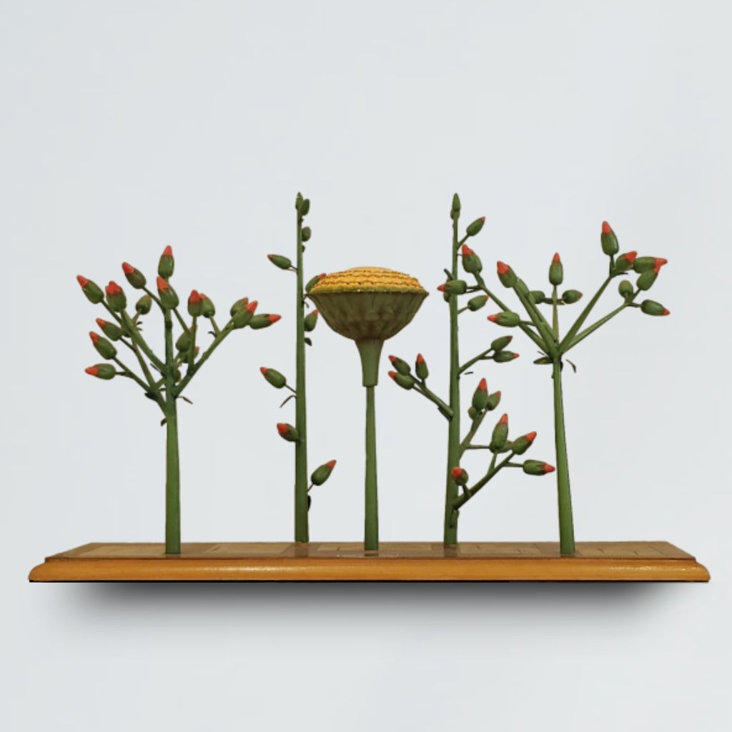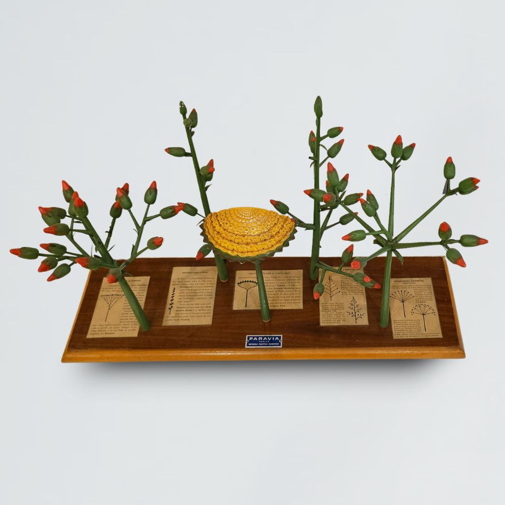 il modello didattico raffigura diversi tipi di inflorescenze, ramificazioni e fillotassi. Questi modelli, assolutamente originali, sono in metallo leggero montati su tavoletta con chiare spiegazioni. Il modello è scomponibile
