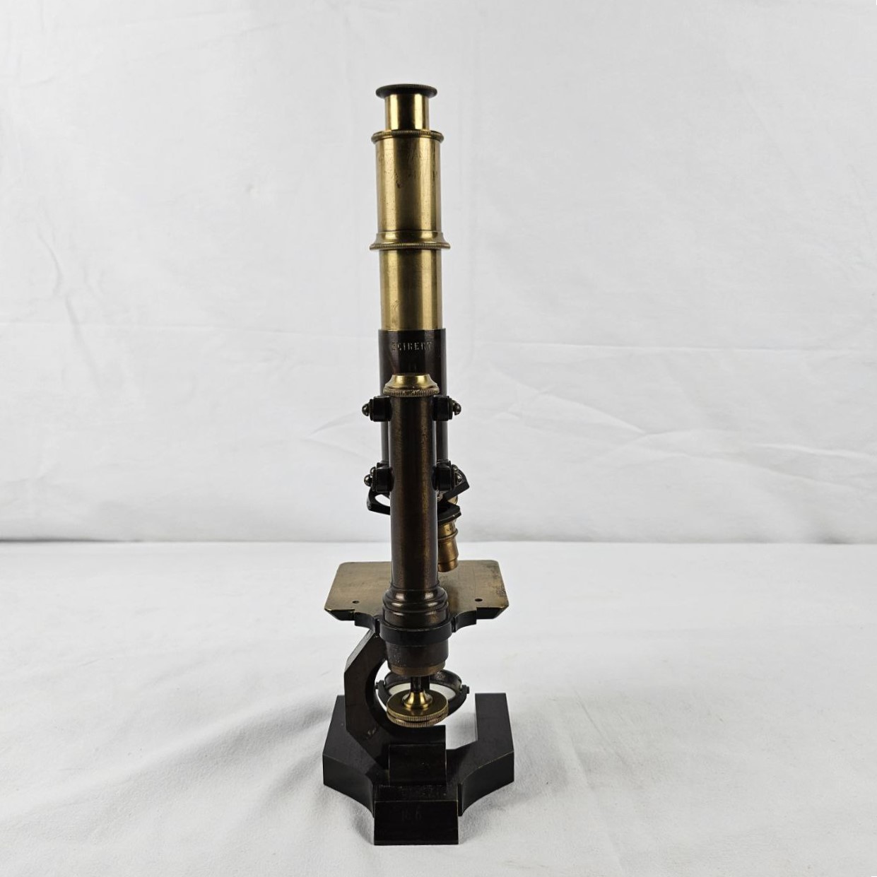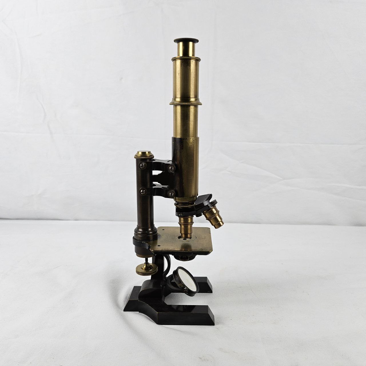 il microscopio è composto da un tubo ottico con messa a fuoco regolabile tramite meccanismo a cremagliera. Alla base è presente una testa porta-obiettivi girevole, che permette l’uso di almeno due obiettivi diversi. La base del microscopio ha una forma ad “u” e sostiene un tavolino portaoggetti, dotato di foro centrale e privo di pinze. Sotto il tavolino è presente un diaframma (per la regolazione di luce) e uno specchio orientabile, utilizzato per la raccolta e direzione della luce verso il campione