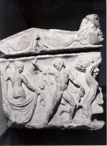 - NOTIZIE STORICO CRITICHE Dal Maffei nel Museum Veronense questo sarcofago viene chiamato con il nome di tomba Bacchica. Da attribuire a maestranze urbane, che riprendevano spesso rilievi greci, di stile ellenistico. La datazione che gli studiosi attribuiscono al sarcofago oscilla dal 130 d.C. circa al 150 d.C. circa, dall'età adrianea all'età antoniniana circa.