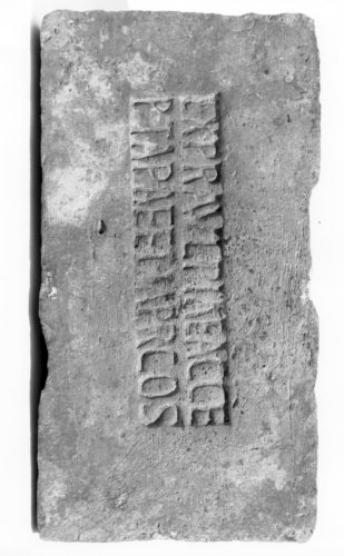 Materiale da costruzione di forma parallelepipeda, su cui è impresso il bollo dell'officina.