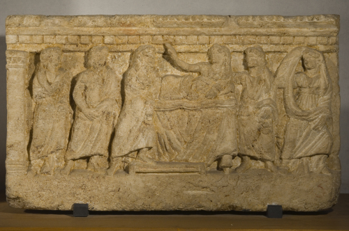- NOTIZIE STORICO CRITICHE Il tema dell'apparizione del defunto alla moglie è molto attestato a Volterra; secondo Modonesi (1990) il tema sarebbe dovuto all'invenzione del predecessore del Maestro della Bottega dei panneggi rigidi.