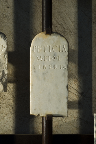 - ISCRIZIONI fronte - Peticia, / M(arci) et (mulieris) l(iberta), / Liberta. - Lettere posate maiuscole - Incisione - latino