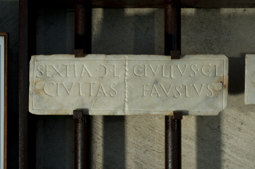 - ISCRIZIONI fronte - Sextia, (mulieris) l(iberta), / Civitas. - Lettere posate maiuscole - Incisione - latino
