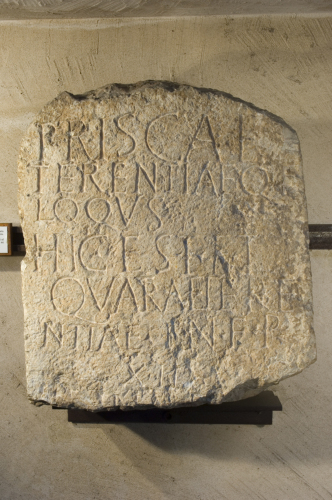 - ISCRIZIONI fronte - Priscae / Terentiae, Q(uinti) f(iliae), / loqus (!) / hic est, et / Quartae Tere / ntiae. In f(ronte) p(edes) / XII / [in] [---] - Lettere posate maiuscole - Incisione - latino