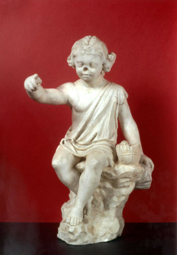 - NOTIZIE STORICO CRITICHE La statuetta si inserisce nella tradizione ellenistica delle immagini di pescatori seduti. Queste piccole sculture furono però usate nel mondo romano soprattutto come arredo di ninfei e fontane, come nella Casa della fontana piccola a Pompei. La testa di fanciullo oppure di Erote integrata nella statuetta è antica ed è un lavoro di genere.