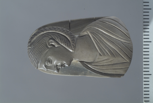 Il cammeo raffigura un busto femminile di profilo verso sin., tagliato al di sotto delle spalle, che si distacca notevolmente dal fondo. Da notare l'acconciatura, che lascia scoperto l'orecchio, caratterizzata da una treccia piatta, caratterizzata da una sorta di reticolato, fissata alla sommità della testa, mentre i capelli sul capo sono resi tramite solchi paralleli. Attorno al lungo collo si dispongono le pieghe della veste, caratterizzate da solchi paralleli che convergono verso il centro.