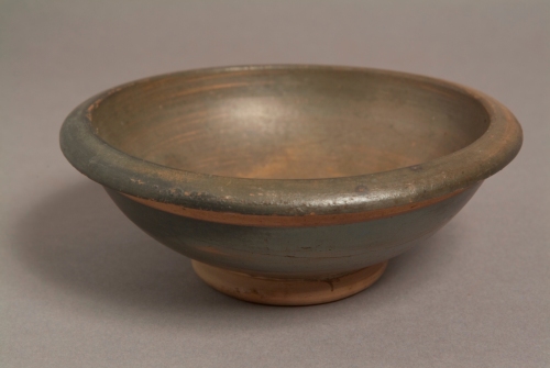Bacino a calotta, orlo ripiegato verso l'esterno, piede ad anello distinto, irregolarmente modellato, con spigolo vivo esterno. Piede e fascia esterno sotto l'orlo risparmiati.