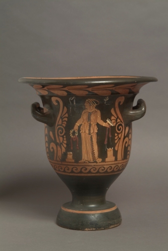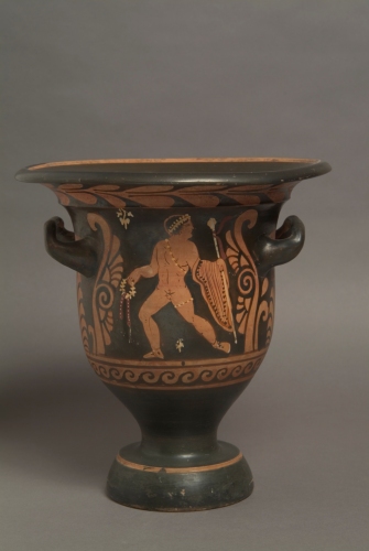 - NOTIZIE STORICO CRITICHE Il soggetto tratto dal ciclo dionisiaco è ricorrente nella decorazione di un gruppo di crateri del "pittore Python", che Trendall definisce della "Menade e del Dioniso" cui il cratere di Venezia pare appartenere.