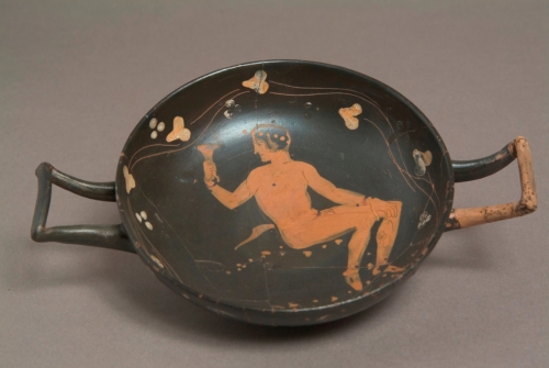 - NOTIZIE STORICO CRITICHE L'esemplare è attribuito dal Trendall alla cerchia del Pittore di Caivano. Per il tipo di coppa e di corona di foglie d'edera: A.D.TRENDALL, The red-figured vases of Luciana, Campania and Sicily, Oxford 1967, pag.313; per il tipo di satiro: cfr. ID. IBID. pag. 314, n° 635-636.