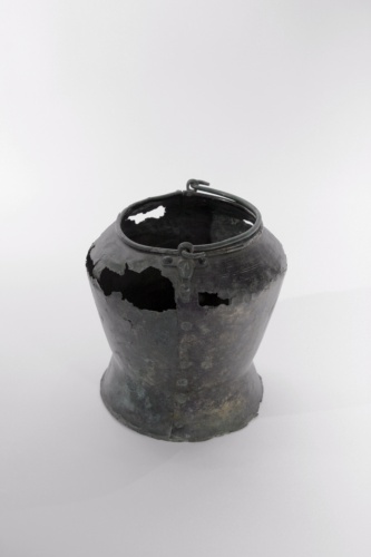 bronzo / fusione/ laminatura/ martellatura/ a incisione / fusione piena per attacchi e ansa/ piombo per l'anima dell'orlo