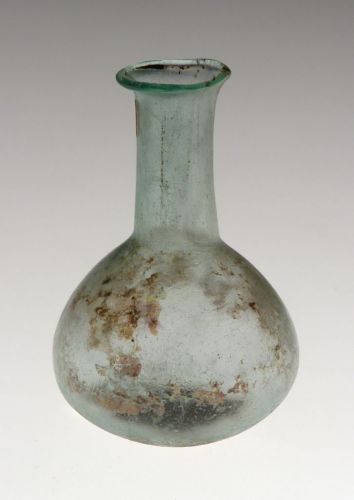 Labbro estroflesso con orlo irregolare ripiegato all'interno, collo cilindrico, ventre troncoconico con pareti arrotondate, fondo piano