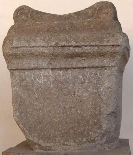 dedica a L. Ennius Enicenius, figlio di Lucio, della tribù Romilia (ara funeraria parallelepipedo)