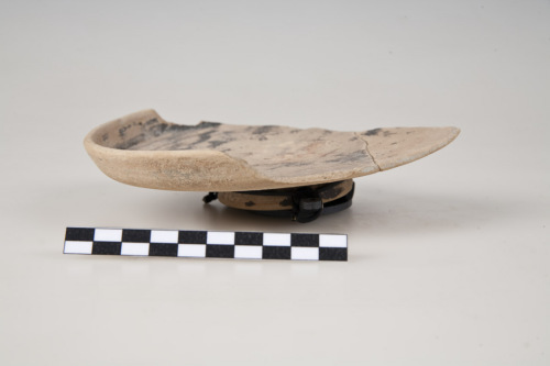 Patera con vasca piatta, leggermente concava, orlo alto, verticale, rettilineo, leggermente ispessito, piede ad anello troncoconico. All'interno della vasca, cerchi concentrici incisi e al centro, disco di impilamento rosso-bruno. All'interno della vasca, in prossimità dell'orlo, iscrizione etrusca graffita, ductus sinistrorso regolare, con tratto leggero. Rix H. propone la lettura Śiliu = nominativo, termine maschile formato dalla radice Śil, che compare ad Adria e nell'onomastica venetica di Este in epoca romana, e suffisso -iu, tipico dell'area etrusco-settentrionale e padana. L'argilla è di colore beige, la vernice è nero-bruna, opaca, molto diluita, con chiazze rosso-brune.