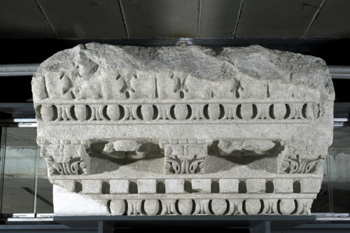 - NOTIZIE STORICO CRITICHE Per la resa imprecisa e la qualità modesta degli ornati, fortemente semplificati e standardizzati, il pezzo è attribuibile a una bottega locale. Le dimensioni e la sequenza ornamentale ne suggeriscono l'appartenenza a un portico, forse pertinente al Foro concordiese.