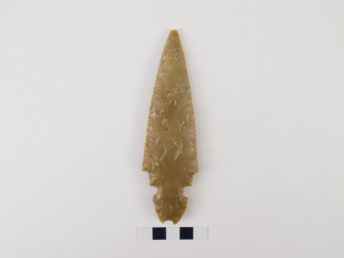 pugnale a codolo a ritocco piatto, bifacciale e coprente; il codolo inizia con due incavi asimmetrici appena accennati