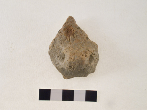 frammento di parete con ansa a nastro e foro impostato orizzontalmente; superfici rozzamente lisciate