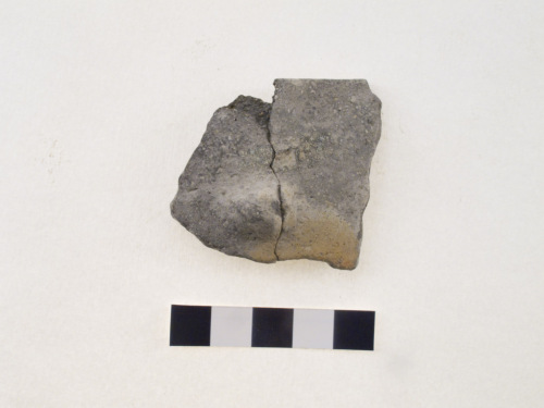 frammento di orlo piano pertinente ad uno scodellone a profilo troncoconico; al di sotto dell'orlo è presente una bugna conica; superfici lisciate