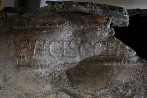 Conduttura idrica (fistula) in piombo, con lamina ribattuta in corrispondenza del giunto di saldatura; in corrispondenza della frattura si distingue parte di un bollo entro cartiglio con il nome del plumbarius che fabbricò la conduttura dell'acqua della colonia concordiese.