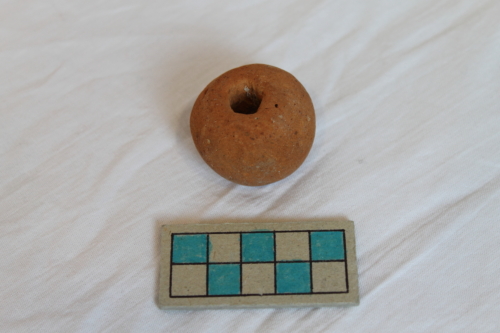Peso di forma irregolarmente sferoidale, caratterizzato al centro da un foro circolare passante funzionale alla sua sospensione sulla parte inferiore della rete da pesca.
