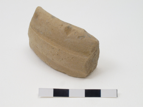 Frammento di un ansa a nastro, con due solcature esterne parallele, probabilmente di un'anfora globulare altomedievale. La dimensione del frammento non permette ulteriori indicazioni tipologiche.