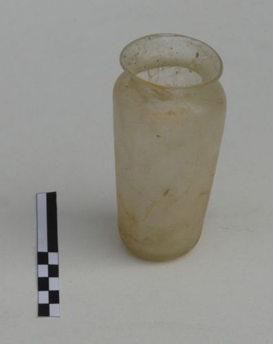 orlo arrotondato, labbro svasato obliquo, distinto; corpo cilindrico affusolato verso il basso; fondo incavato al centro