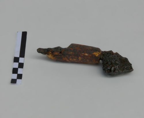 codolo a sezione quadrangolare che si assottiglia verso l'estremità; immanicatura in osso tornito e levigato, cilindrica; lama piatta, sottile