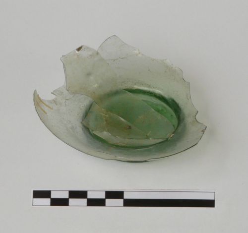 orlo tagliato a spigolo vivo, labbro distinto, appena rientrante; corpo "a sacco" con diametro massimo nella metà inferiore; piede a disco distinto, con leggero incavo al centro del fondo esterno