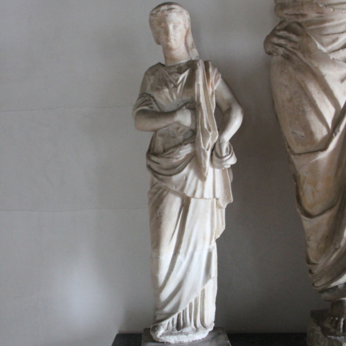 La statuetta, in parte restaurata, è stata ricostruita assemblando due frammenti antichi e la testa, di probabile fattura moderna. Il volto è costituito da un morbido ovale, caratterizzato da un'ampia fronte, che lascia spazio a soppracciglia sottili, seguite da grandi occhi, le cui iridi e pupille sono segnate da un solco sottile. Il naso è lungo e diritto, mentre la bocca, dalle piccole labbra carnose è piegata in un delicato sorriso. Ritrae una figura femminile stante sulla gamba sinistra, che è stesa a reggere il peso dell'intera scultura, mentre la destra è lievemente flessa e portata in avanti. Il braccio destro, probabilmente di restauro, è piegato in vita a trattenere la veste, mentre il sinistro è steso lungo il corpo da appoggiare la mano sulla relativa anca. Indossa un chitone leggero che giunge sino ai piedi fino a coprirli interamente, coperto da un himation pesante che le si avvolge attorno al corpo. Il tipo riprodotto richiama la Venere Marina, il cui prototipo, di ambito culturale attico, risale al II secolo a.C. sebbene se ne differenzi per la scelta di rendere maggiormente statica e frontale l'intera figura.