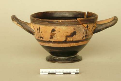 - NOTIZIE STORICO CRITICHE le figure sono tracciate in maniera tanto sommaria che è difficile distinguere quelle femminili da quelle maschili. Attribuito per forma, misure (si tratta di uno skyphos di dimensioni molto ridotte) e resa della decorazione al gruppo di Lancut da Favaretto 1982 (con bibliografia per esemplari confrontabili)