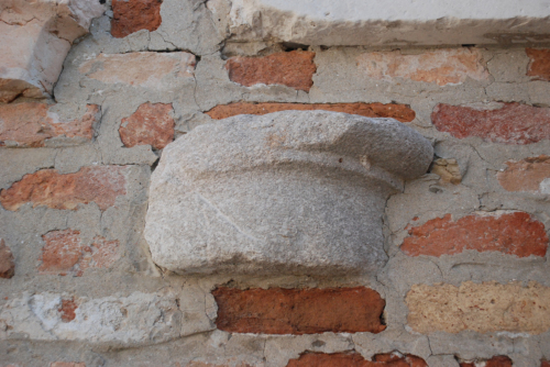 Colonnina o semicolonna con parte sommitale modanata lavorata nello stesso blocco; sopra la colonnina, a fusto liscio, si distingue un collarino piatto, da cui ha origine un toro liscio.