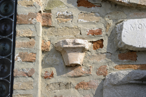Capitello (o semicapitello) a forma di piramide tronca e dagli spigoli verticali progressivamente smussati.