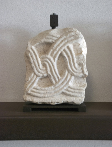 Frammento di fregio decorato con cerchi costituiti da fettuccia viminea a tre capi, annodati l'uno all'altro.