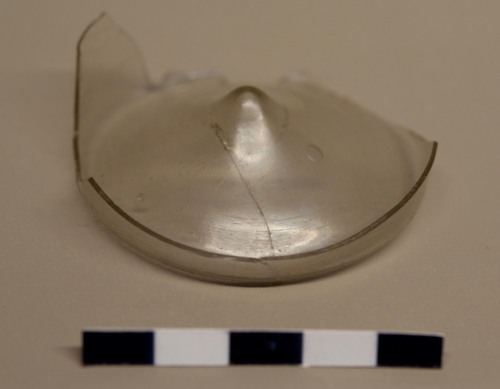 Bicchiere a parete liscia con alto corpo cilindrico, con conoide di fusione piuttosto rilevato. Vetro sottile di colore trasparente.