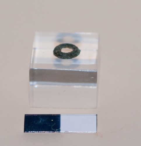 Anello da vestiario di piccole dimensioni in lega di rame. La sezione dellanello è ellittica e schiacciata ai bordi.