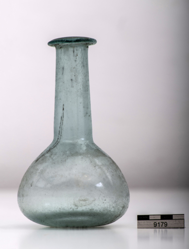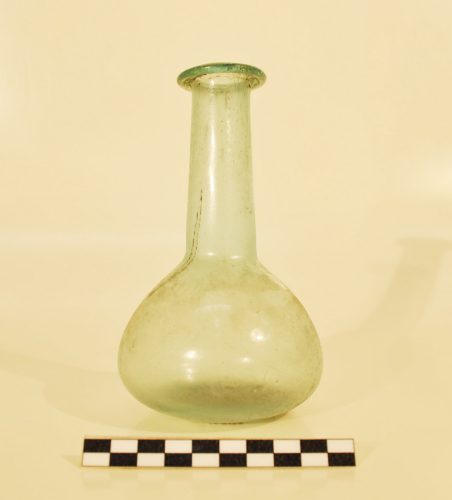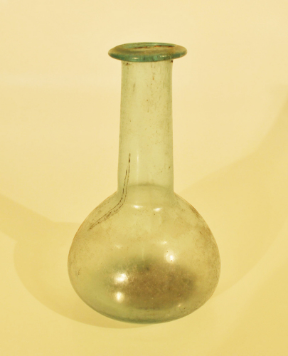 Balsamario con orlo orizzontale ribattuto, lungo collo cilindrico, sottolineato alla base da una leggera strozzatura, corpo a bulbo, base piana. Vetro a colorazione naturale verde/azzurro trasparente. Diffuso in Italia, Gallia e province settentrionali, in Veneto soprattutto nellarea centro-orientale, mentre limitata è la diffusione nel veronese.