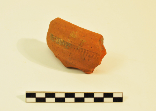 Orlo a fascia ingrossata e ripiegata all'esterno, marcato da un leggero gradino; sul labbro vi sono sei sottili costolature parallele. Tipo di anfora prodotta nella Tunisia centrale e settentrionale, diffuse lungo le coste del Tirreno, della Francia meridionale e del nord africa, adibite essenzialmente al trasporto di olio, diffuse dal II al IV sec. d.C. L'argilla è porosa di colore rosso mattone, ingobbio di colore biancastro.