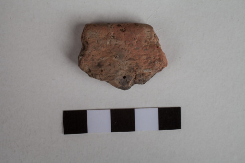 frammento di orlo con labbro arrotondato; impasto semigrossolano, superfici lisciate di colore nero-arancio (esterna e interna)